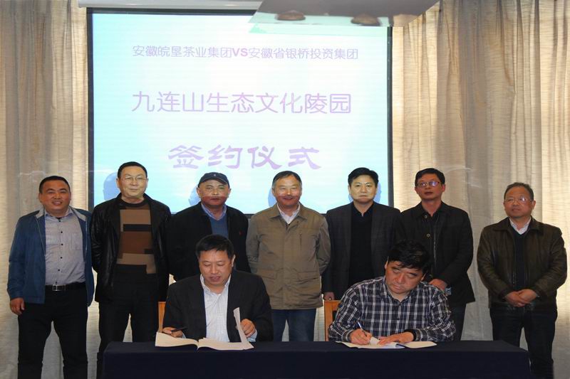 为发展经济,服务社会,323,皖垦茶业集团董事长凌军与安徽省银桥投资集团董事长张和生,就合作投资建设九连山生态文化陵园项目签署了框架协议。
